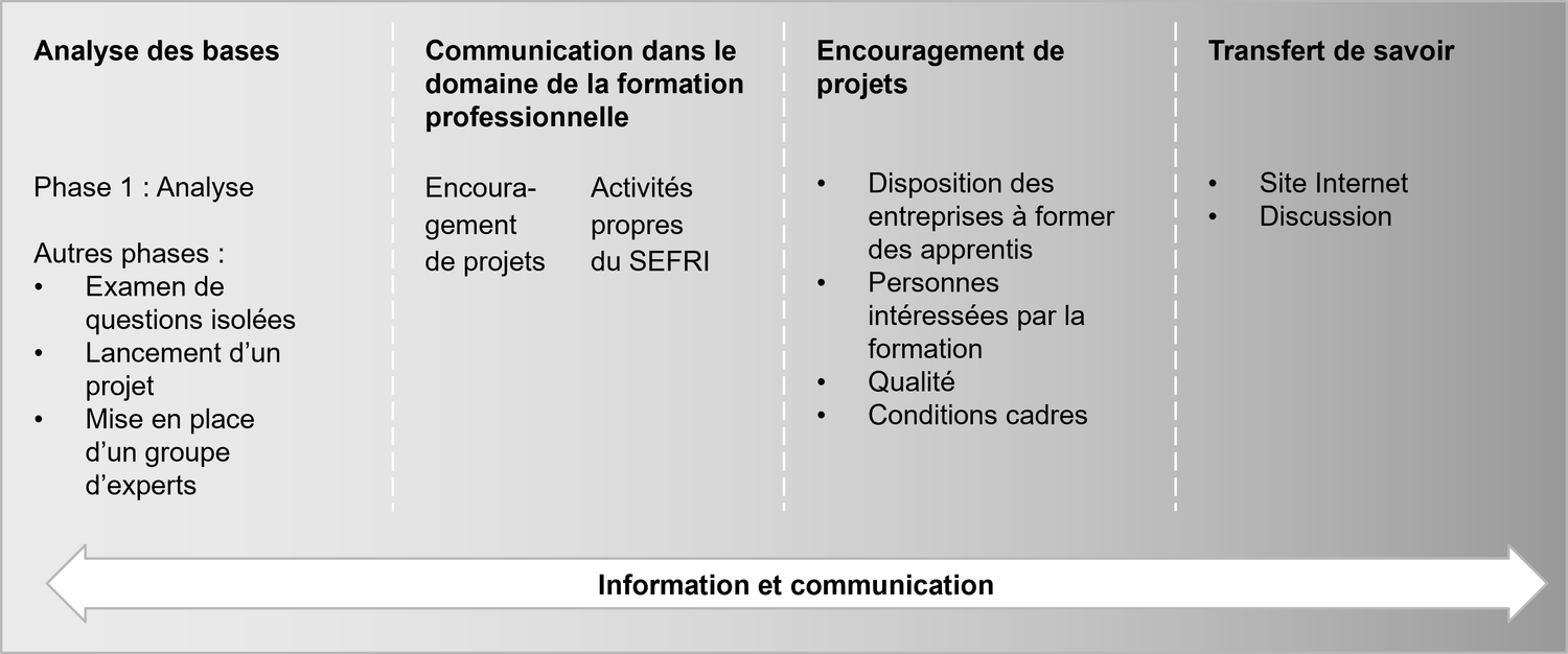 - Soutenir de manière ciblée la communication des partenaires dans le domaine de la formation professionnelle