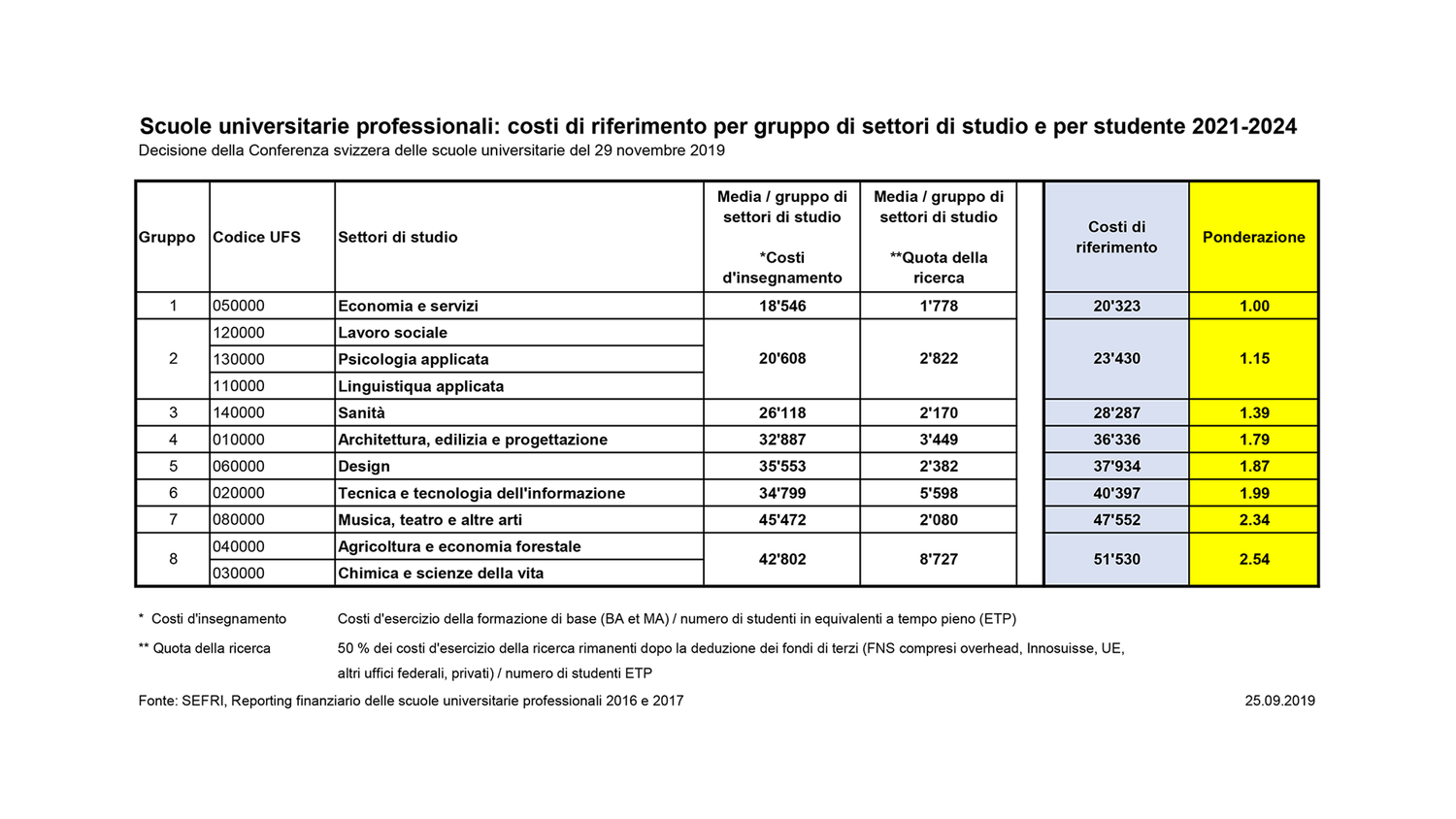 Scuole universitarie professionali: calcolo importo globale dei costi die riferimento 2021–2024